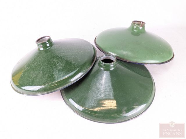 Lot # 49 - Trois abat-jours vintages en métal émaillé, mesurant 14 pouces de diamètre chacun