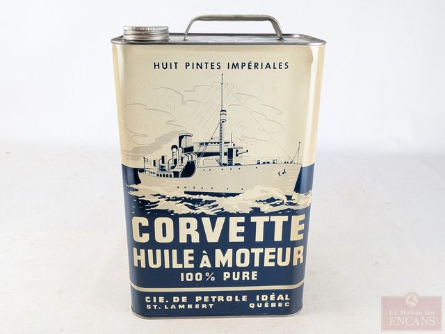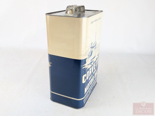 Lot # 142 - Bidon de huit pintes impériales d'huile à moteur Corvette Saint-Lambert, Québec, fait en métal et mesurant 14 pouces de hauteur SOLD