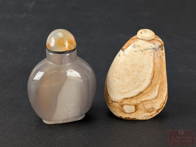 Lot # 107 - Deux bouteilles à priser sculptées sur pierre, mesurant 2 pouces de hauteur chacune