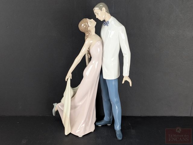 Lot # 42 - Porcelaine Lladro modèle 'Happy Anniversary Couple', mesurant 12 pouces de hauteur, dans sa boite d'origine