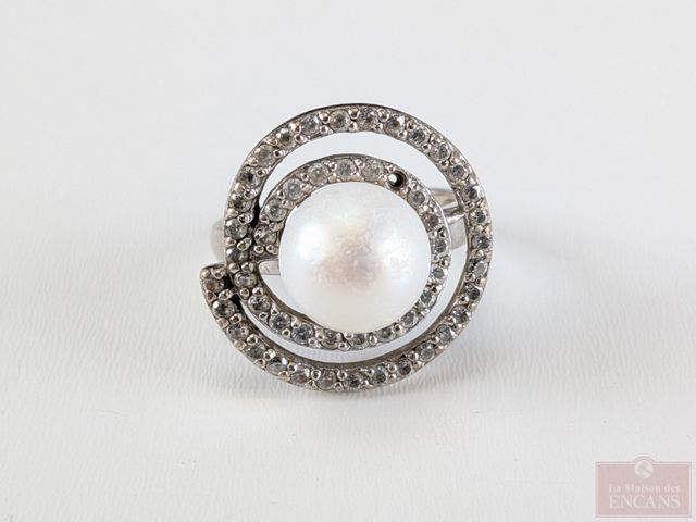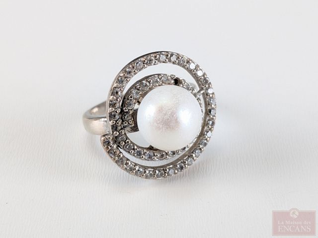 Lot # 112 - Bague en argent sertie d'une perle, taille 7.25