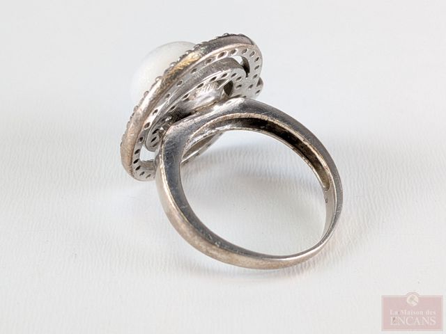 Bague en argent sertie d'une perle, taille 7.25
