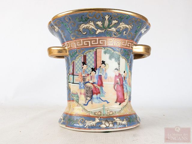 Lot # 58 - Vase chinois en porcelaine 'Chinese Export', peint à la main avec dorures, datant des années 1950 et mesurant 7 pouces de hauteur