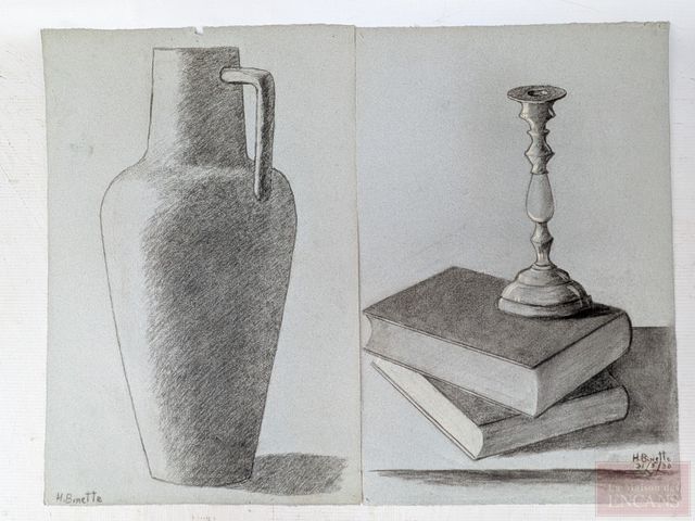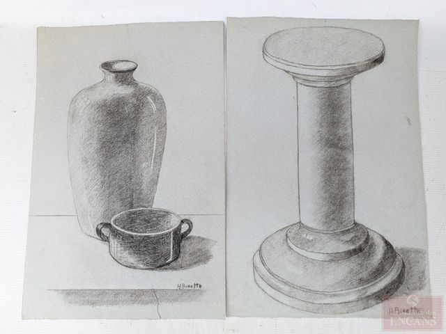Lot # 181 - Hortense BINETTE -Lot de dessins au fusain et à la mine, signés, le plus grand mesurant 12.5x19 pouces SOLD