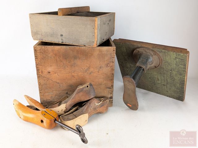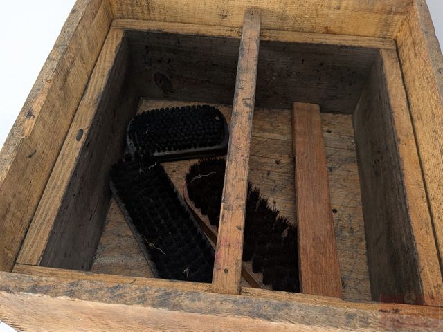 Boite pour cireur de chaussures avec accessoires, mesurant 20 pouces de hauteur