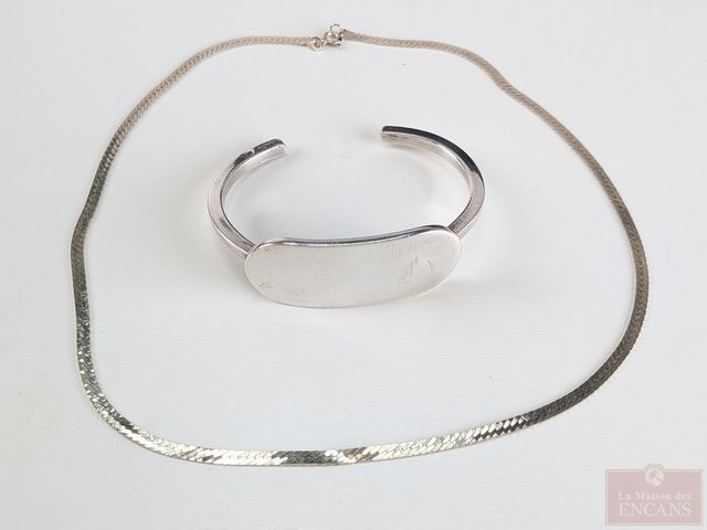 Chaine et bracelet en argent, la chaine mesurant 18 pouces de longueur et le bracelet mesurant 3 pouces de largeur