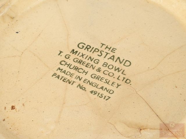 Lot # 164 - Ancien bol à mélanger en céramique 'The Gripstand' par T.G. Green and Co., fait en Angleterre et mesurant 13 pouces de diamètre CANCELLED