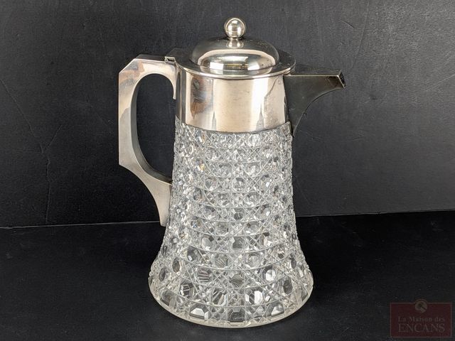 Lot # 143 - Carafe en cristal Kirby Bird and Co. avec compartiment à glace, mesurant 10 pouces de hauteur SOLD