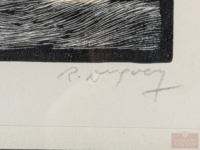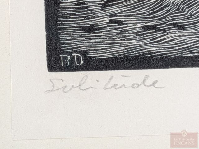 Lot # 24 - Rodolphe DUGUAY- Gravure signée à la mine, mesurant 3x4 pouces et titrée Solitude