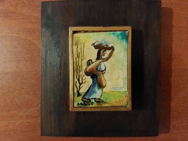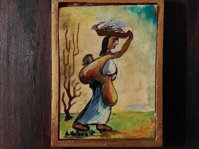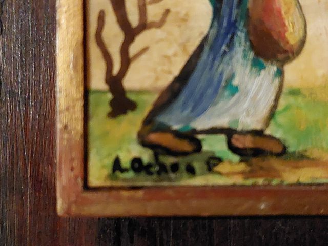 Lot # 42 - A. OCHOS - Petite huile sur métal signée et mesurant 2.75x2 pouces CANCELLED