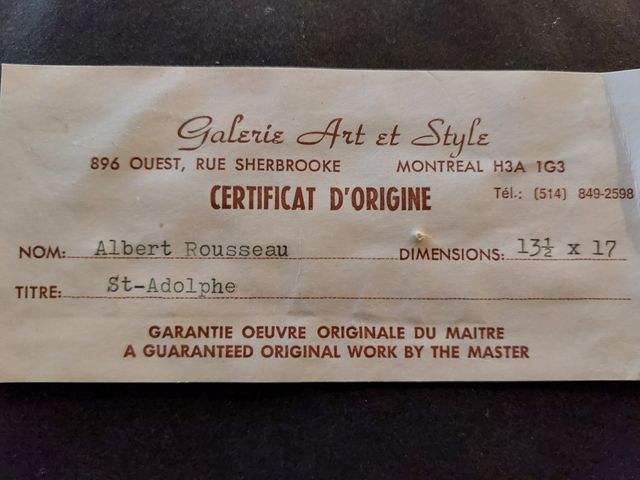 Albert ROUSSEAU - Gravure signée et titrée Saint-Adolphe - Épreuve d'artiste - mesurant 16x18 pouces