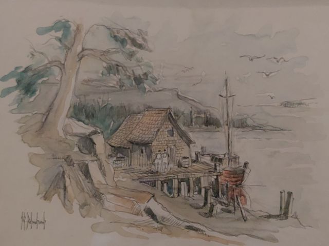 Lot # 4 - DESNOYER - Aquarelle sur papier signée - scène bord de lac - mesurant 14x10 pouces SOLD