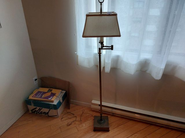 Lot # 28 - Lampe sur pied en métal et laiton mesurant 58 pouces de hauteur VENDU
