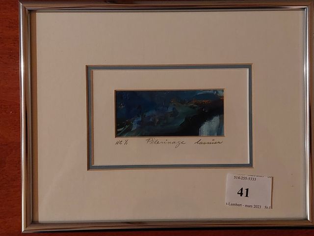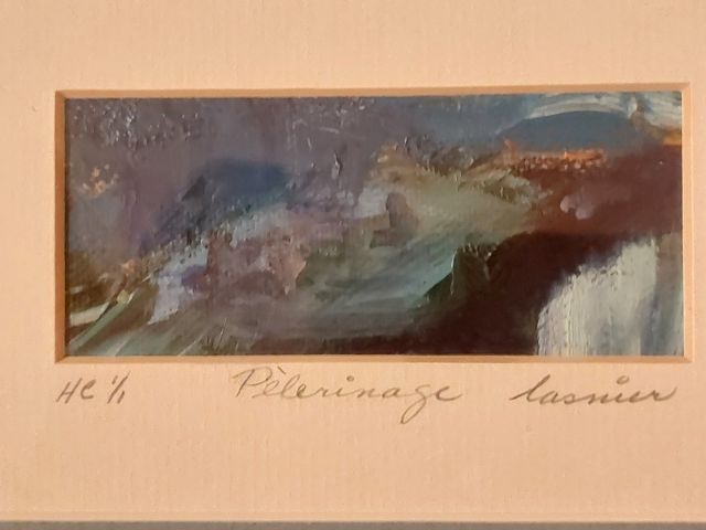 Lot # 41 - LASNIER - Acrylique signée et titrée Pèlerinage - mesurant 1.5x3.5 pouces VENDU