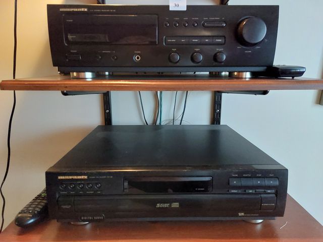 Lot # 30 - Lot comprenant amplificateur Marrantz Hi-Fi stereo receiver SR-48 - Lecteur CF Marrantz - Télévision Toshiba 20 pouces - meuble télé SOLD
