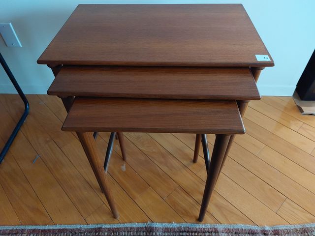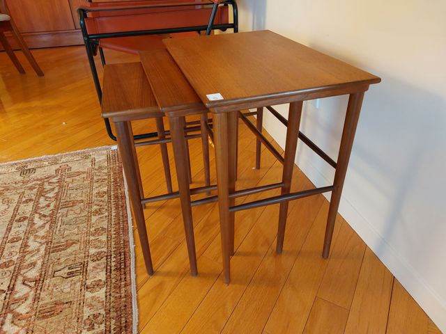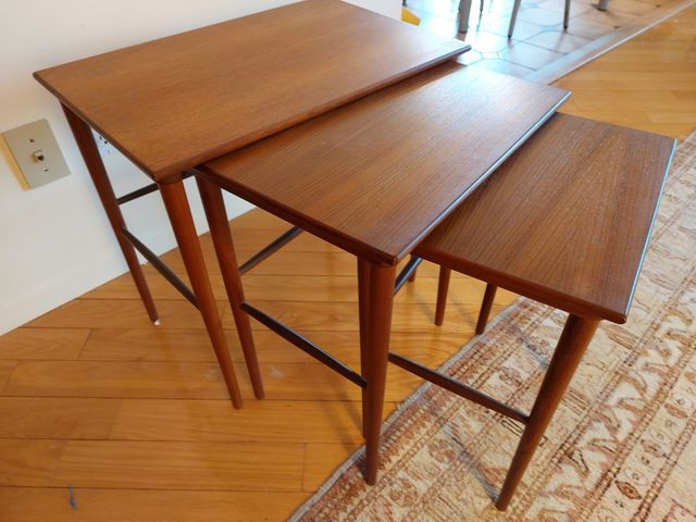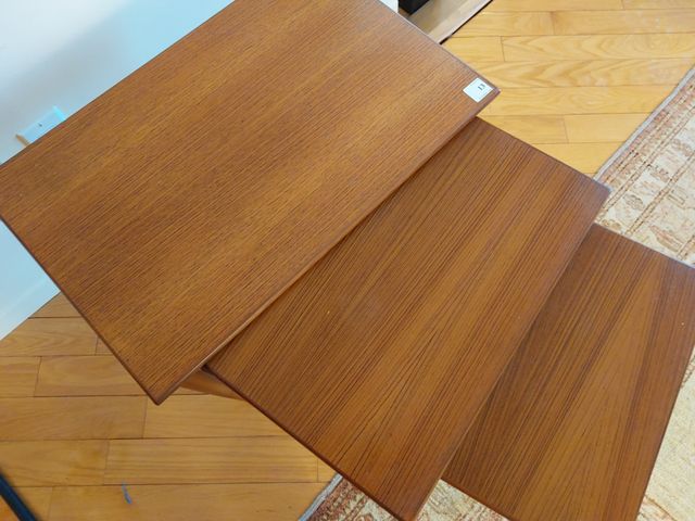 Trois tables gigognes en teck fabriquées en Suède - la plus grand mesurant 22x21x14 pouces