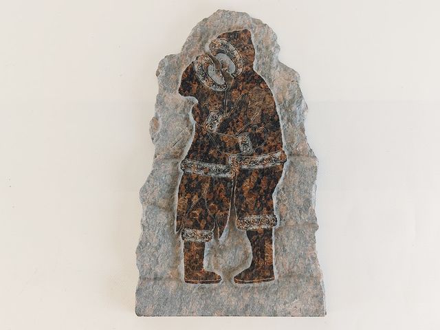 Lot # 61 - Plaque sculptée sur pierre inuit représentant un couple mesurant 14 pouces de hauteur   SOLD