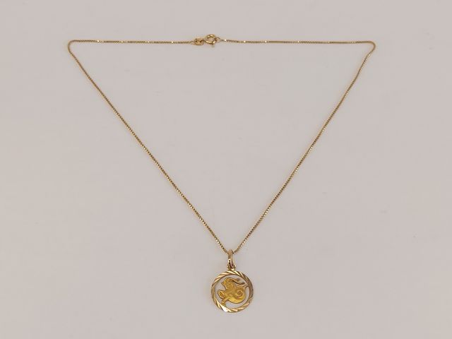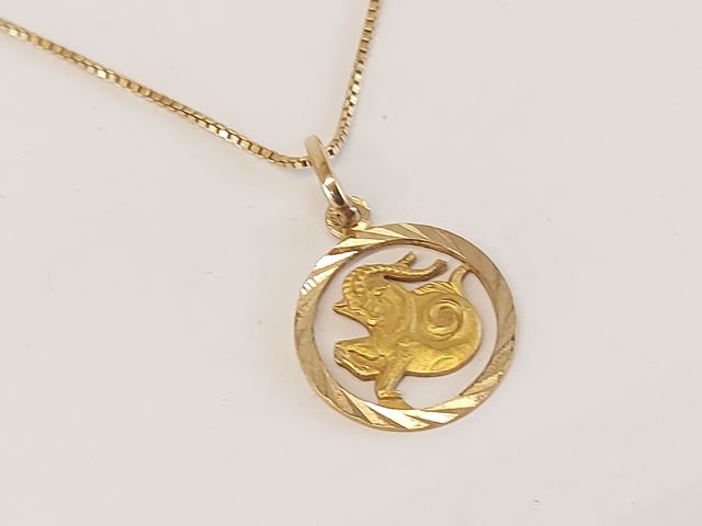 Lot # 149 - Chaine avec pendentif en or 10k signe astrologique bélier mesurant 1 pouces de hauteur et le collier mesurant 16 pouces de longueur SOLD