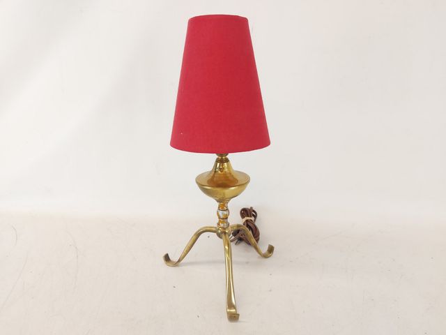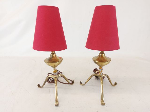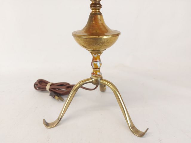 Lot # 100 - Paire de lampes tripode en laiton emmaillé mesurant 14 pouces de hauteur SOLD