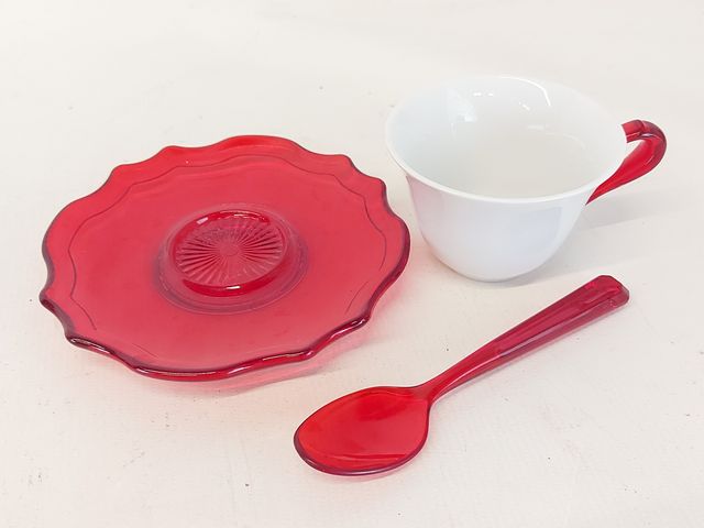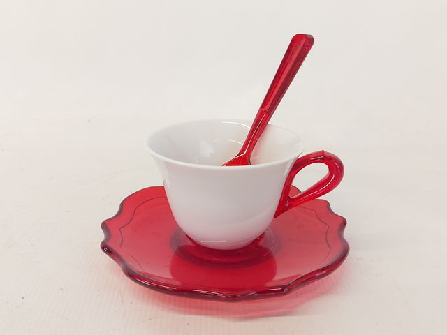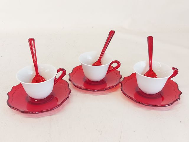 Lot # 68 - Ensemble tasses à espresso Guzzini avec soucoupes et cuillères SOLD