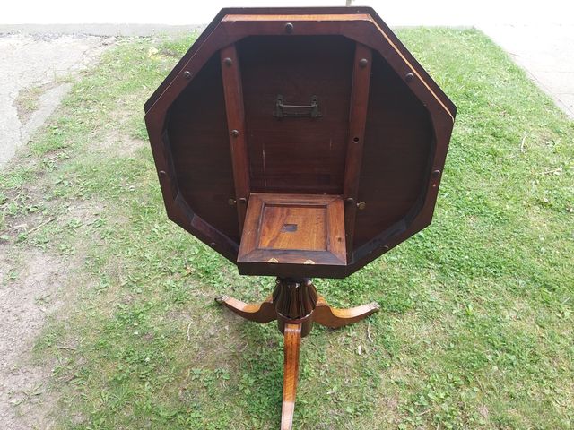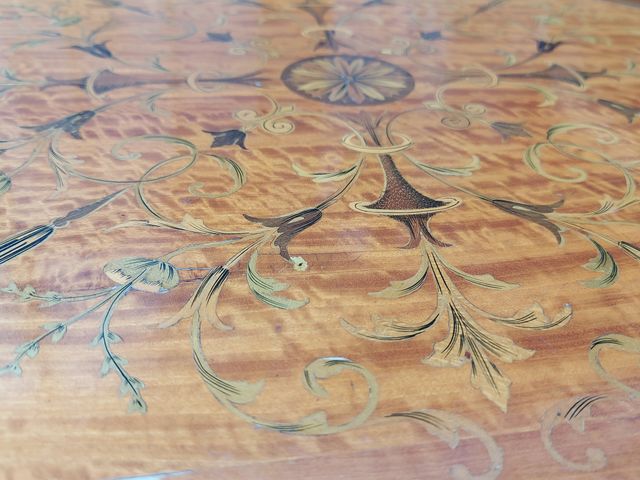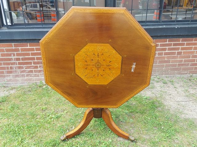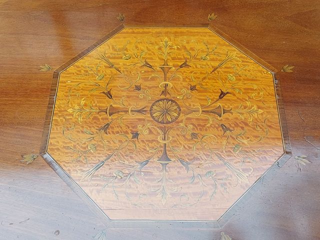 Lot # 144 - Exceptionnelle table à dessus rabattable anglaise Thomas Wilson 68 Great Queenstreet London finement marquetée avec pieds à pattes de lion en laiton sur roulettes datant approximativement de 1830 mesurant 29 pouces de hauteur par 36 pouces de diamètre SOLD
