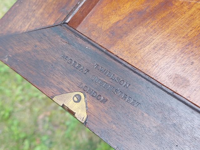 Exceptionnelle table à dessus rabattable anglaise Thomas Wilson 68 Great Queenstreet London finement marquetée avec pieds à pattes de lion en laiton sur roulettes datant approximativement de 1830 mesurant 29 pouces de hauteur par 36 pouces de diamètre
