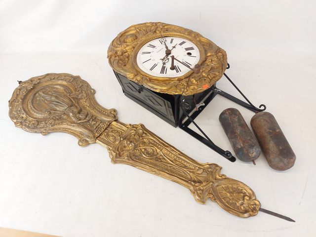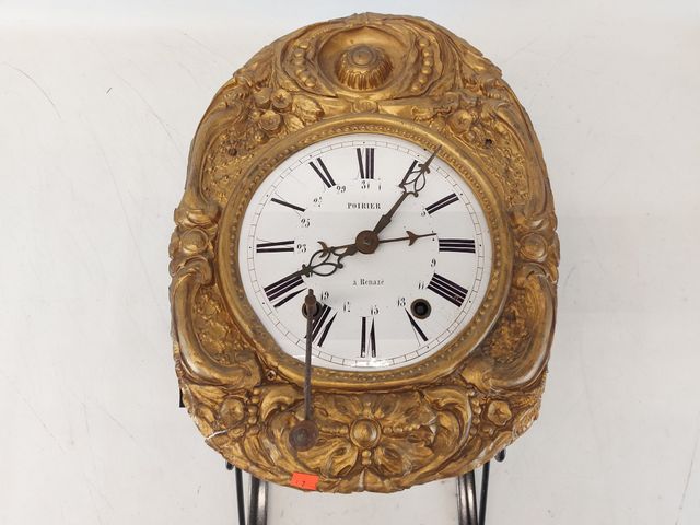 Lot # 38 - Horloge française Poirier à Renazé datant du 19e siècle avec façade emmaillée complète avec ses poids et remontoir mesurant avec son pendule de 56 pouces de hauteur SOLD