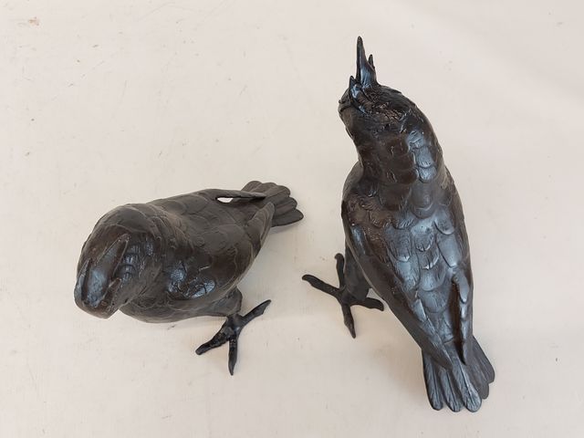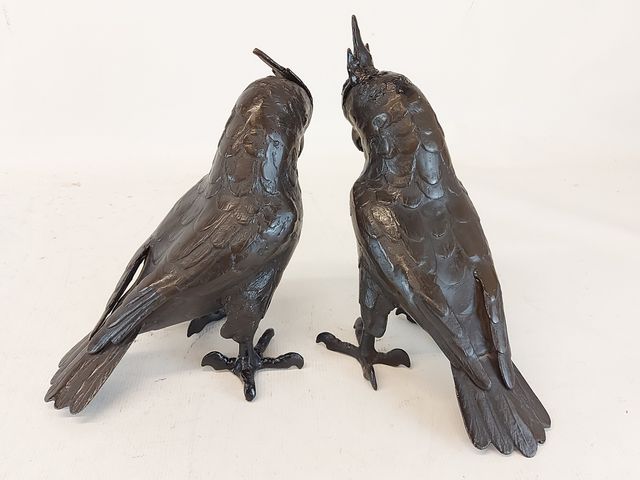 Lot # 222 - Paire de sculptures en métal représentant des cacatoès mesurant 8.5 pouces de hauteur SOLD