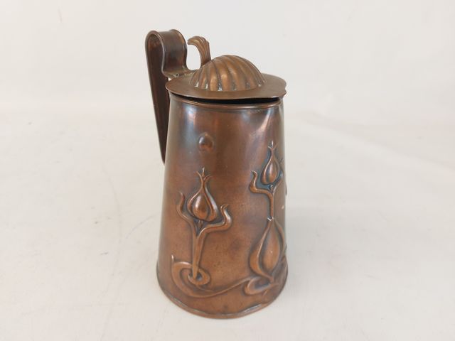 Lot # 121 - Pichet ancien art nouveau en cuivre Joseph Sankey datant du début du 20e siècle mesurant 7.5 pouces de hauteur SOLD