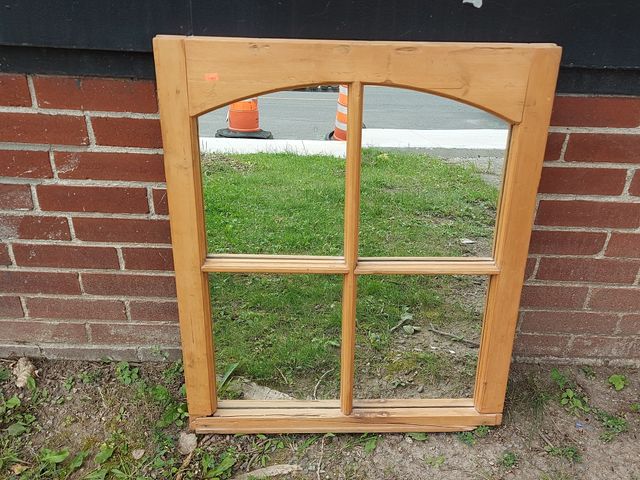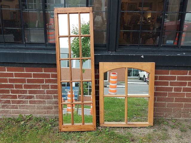 Lot # 13 - Deux encadrements de fenêtres datant des années 1940 convertis en miroir le plus grand mesurant 55x16.5 pouces CANCELLED