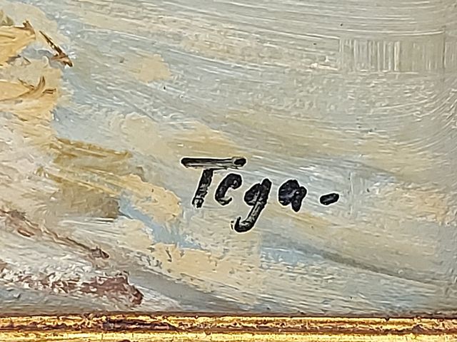 Lot # 112 - TEGA - Huile sur toile signée et mesurant 9.5x12 pouces SOLD