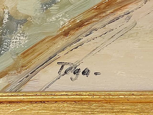 TEGA - Huile sur toile signée et mesurant 9.5x12 pouces
