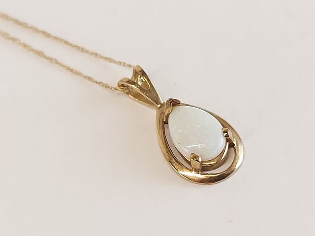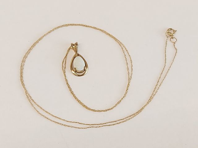 Lot # 72 - Collier et pendentif en or 10k serti d'une opale mesurant 20 pouces de longueur SOLD