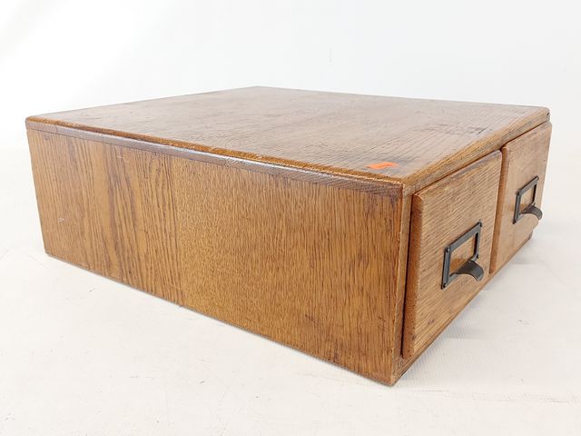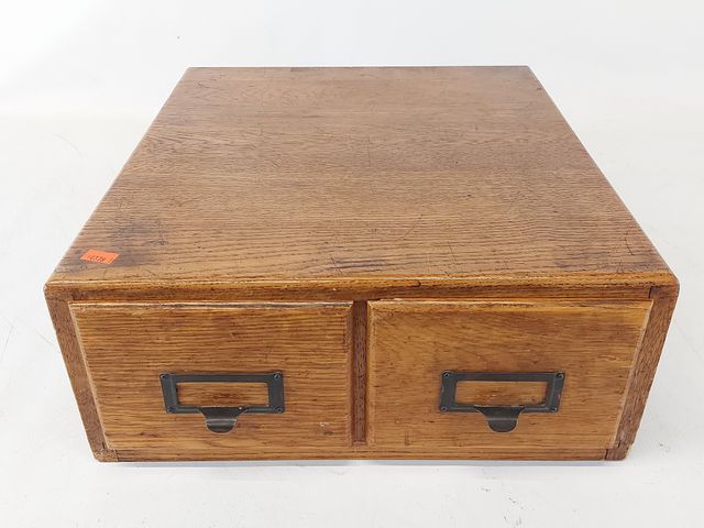 Lot # 4 - Ancien classeur en chêne mesurant 13.5 pouces de largeur par 15 pouces de profondeur et 5.5 pouces de hauteur SOLD