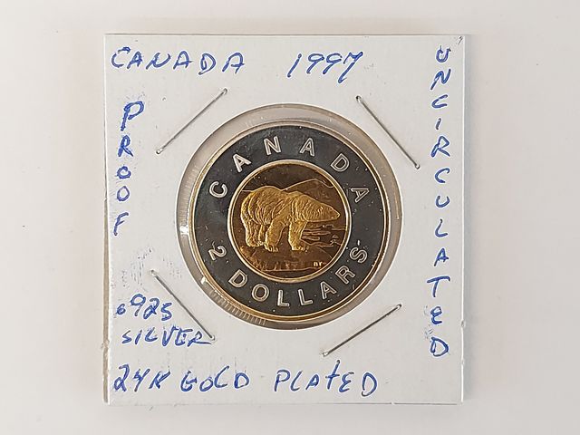 Lot # 183 - Pièce de deux dollars en argent et plaqué or 24k 1997 proof incirculé SOLD