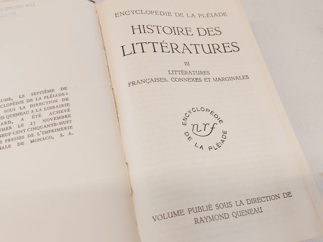 Lot # 23 - Trois livres de la Pléiade dont Histoire des littératures tome 2 et 3 ainsi que Histoire et ses méthodes SOLD