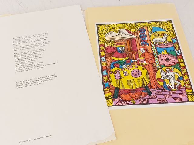 Lot # 17 - Calendrier Des Bergers comprenant multiples lithographies édité par Siloé Paris mesurant 7.5x11.25 pouces SOLD