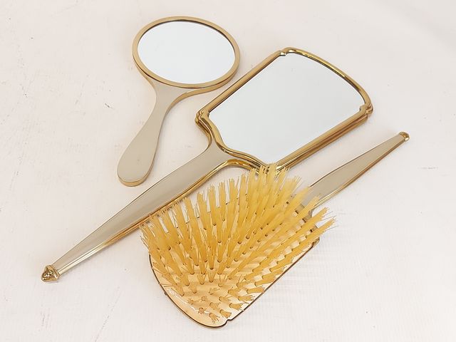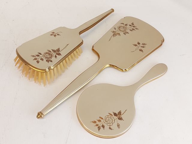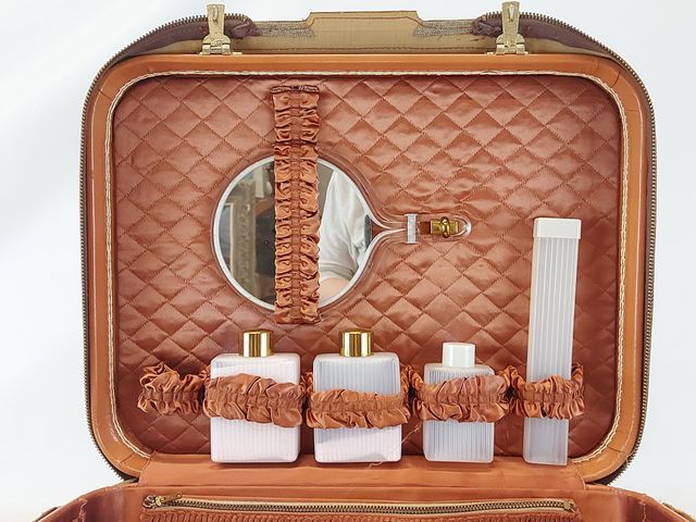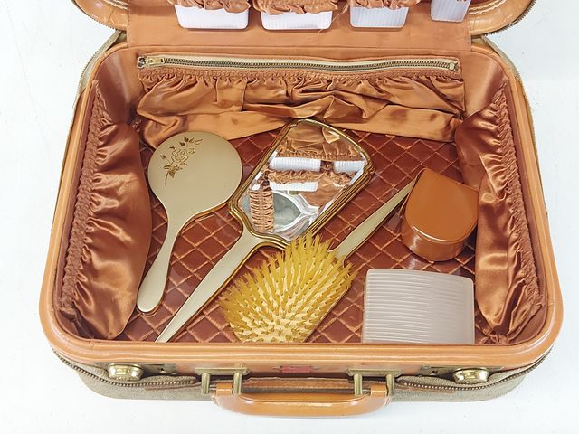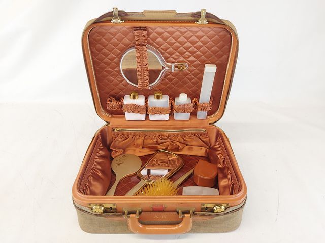 Lot # 113 - Trousse de voyage Fournier vintage comprenant miroirs, brosse, flacons mesurant 15 pouces de largeur SOLD