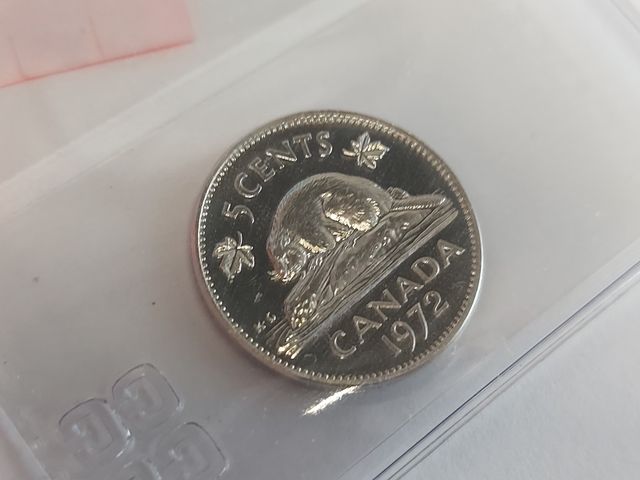 Deux pièces de monnaie canadiennes gradées dont 1 sous 1965 MS64 et 5 sous 1972 UNC64