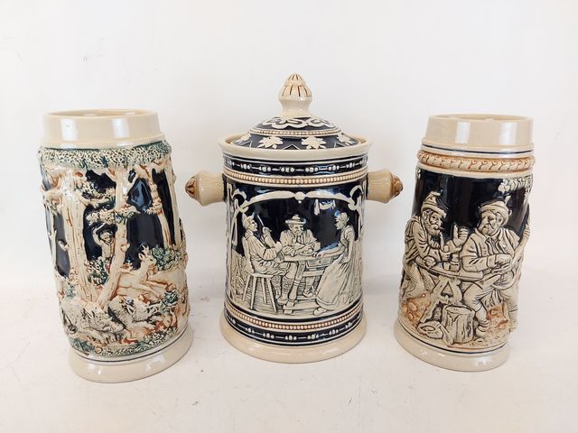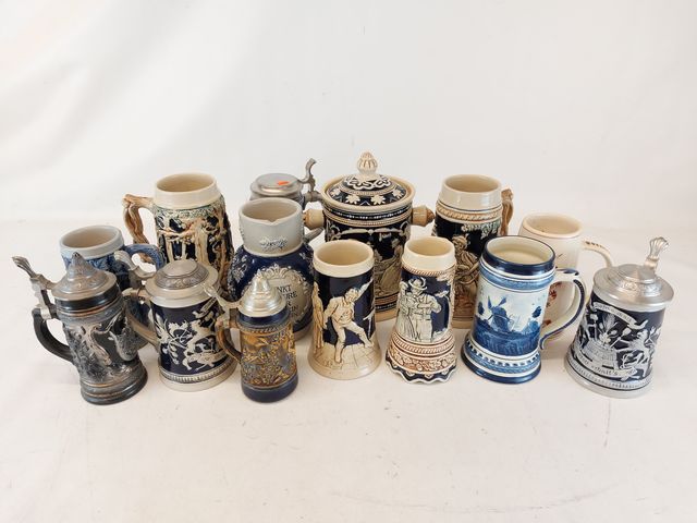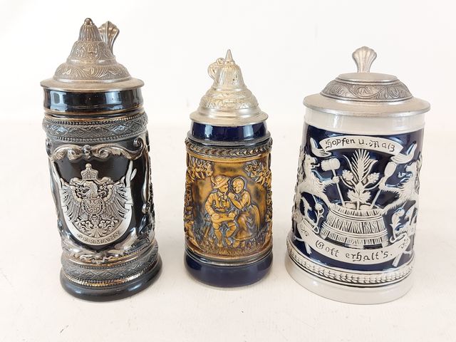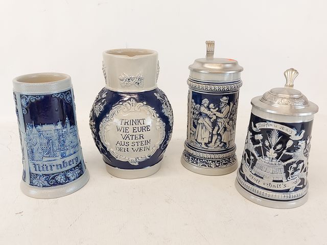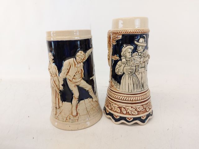 Lot # 223 - Lot de chopes à bières allemandes en porcelaine la plus grande mesurant 8.5 pouces de hauteur SOLD