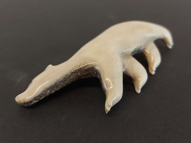 Lot # 66 - Broche inuite représentant un ours polaire sculptée sur bois de caribou mesurant 3.25 pouces de longueur SOLD