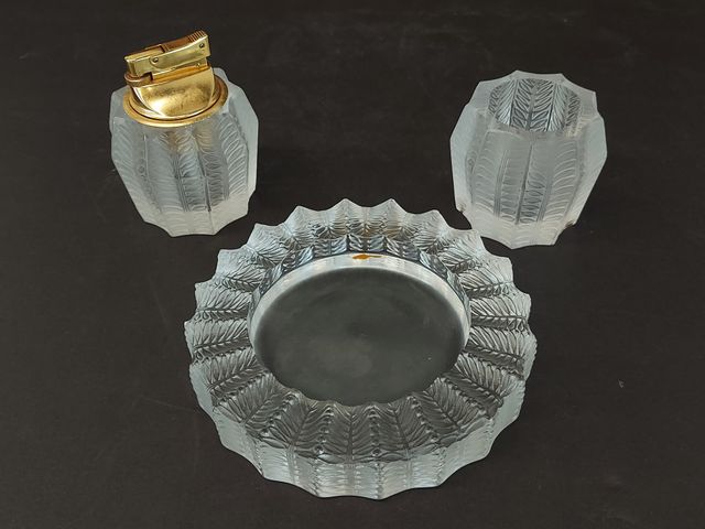 Lot # 114 - Ensemble d'accessoires pour fumeur Lalique série Jamaïque #98 le plus grand mesurant 5.5 pouces de diamètre SOLD
