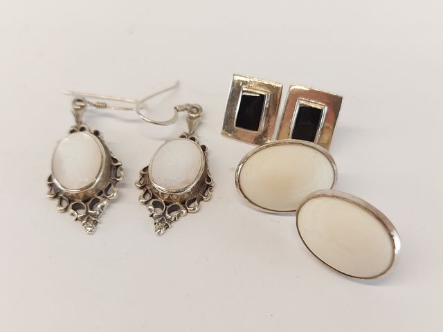 Lot # 62 - Lot de paires de boucles d'oreilles en argent serties de pierres SOLD
