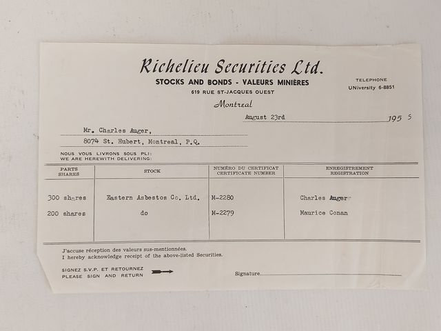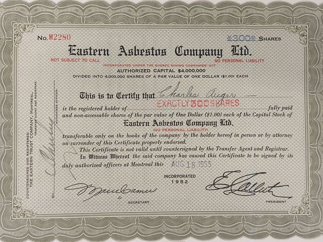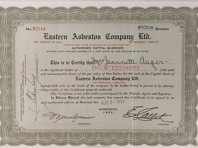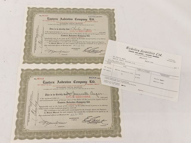Lot # 155 - Lot de bons d'actions de la Eastern Asbestos Company SOLD