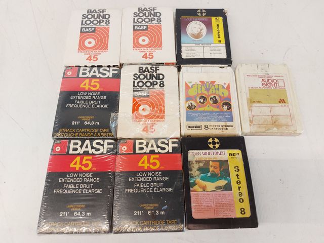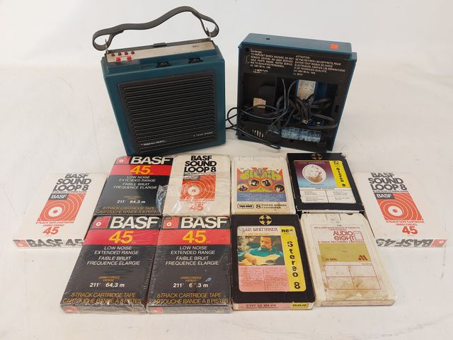 Lot # 27 - Stéréo cassettes realistic vintage 4 track modèle 14-904 avec cassettes dont Beatles et cassettes neuves vierges scellées fonctionnelle SOLD