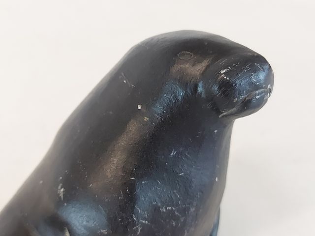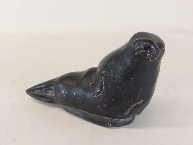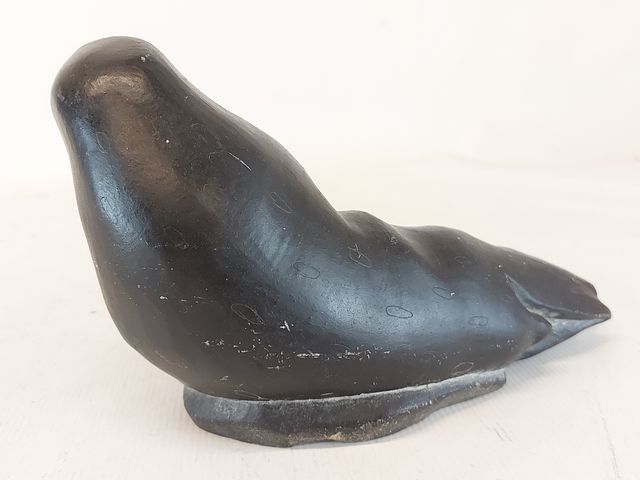 Lot # 11 - KOOM - Sculpture inuite sur pierre à savon signée mesurant 8 pouces représentant un phoque SOLD