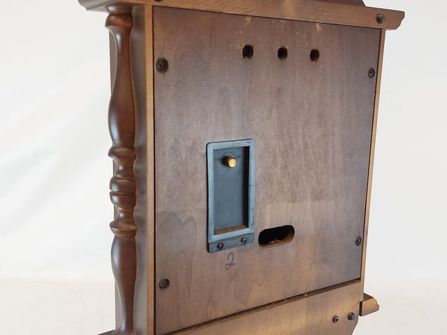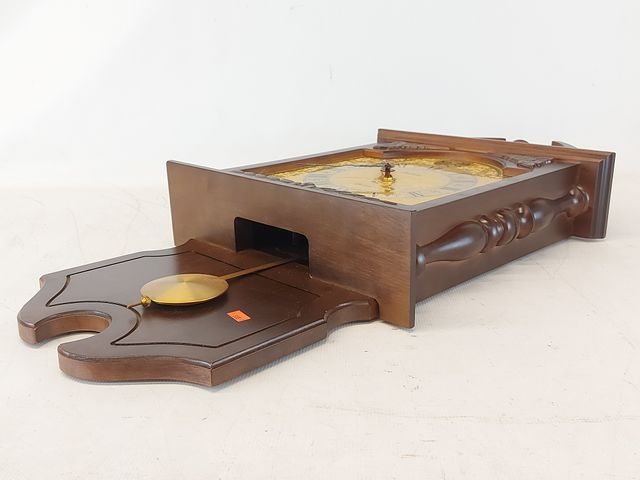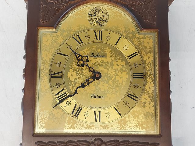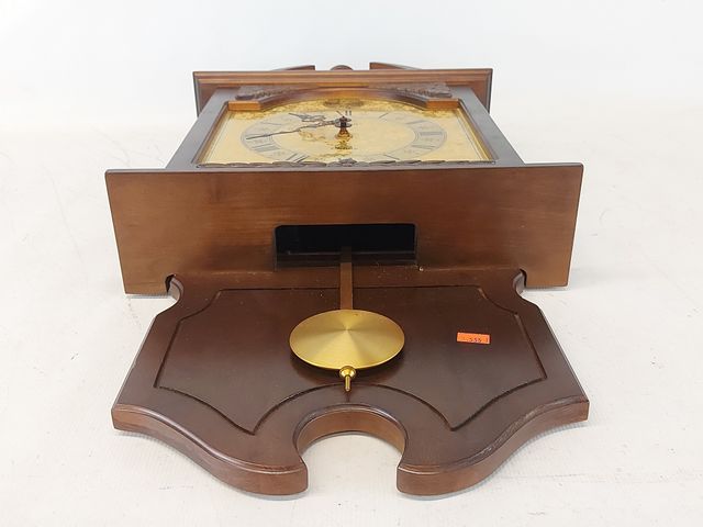 Lot # 110 - Horloge murale en bois Bulova avec son pendule mesurant 26 pouces de hauteur SOLD