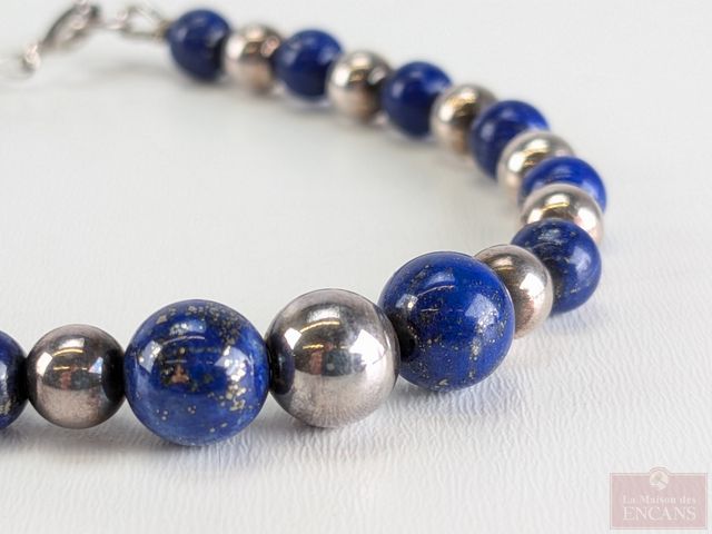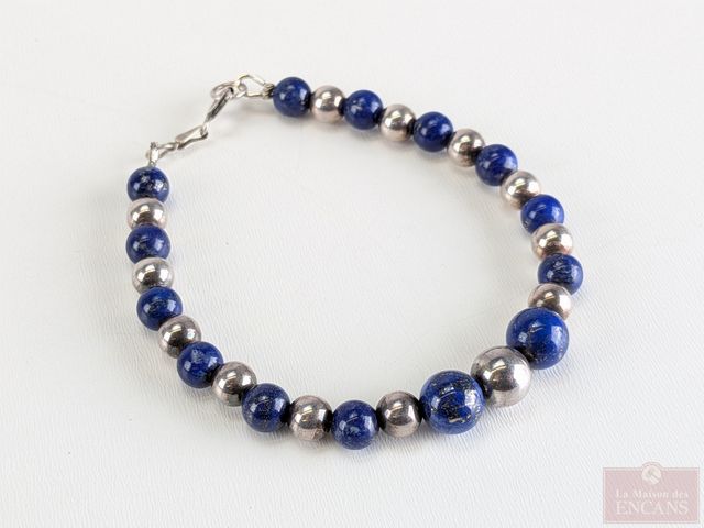 Bracelet en argent et lapis-lazuli, fait en Italie et mesurant 7 pouces de longueur