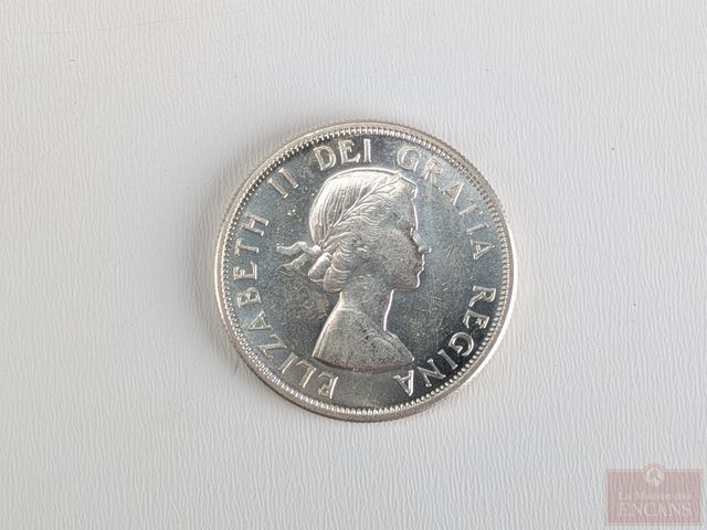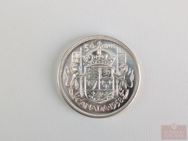 Lot # 223 - Pièce canadienne de cinquante sous 1958 en argent SOLD
