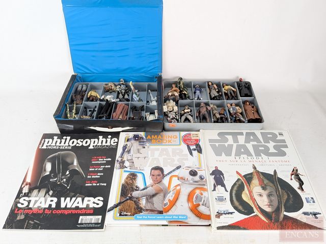 Lot # 164 - Lot Star Wars comprenant livres et figurines, dont Darth Vader 1998, dans un coffre vintage à deux étages 'The Empire Strikes Back' datant des années 1980 SOLD